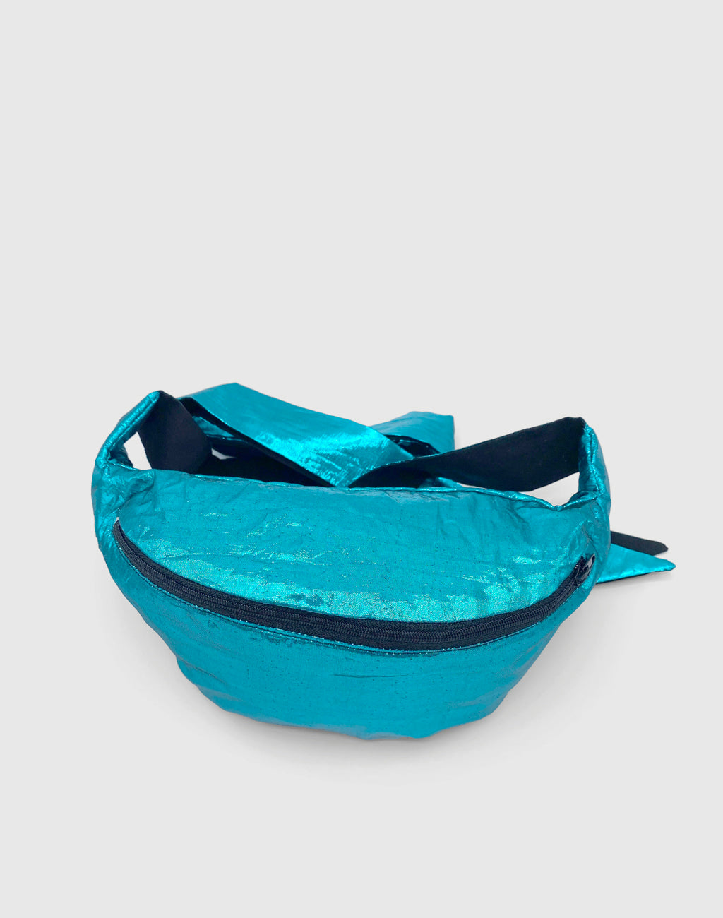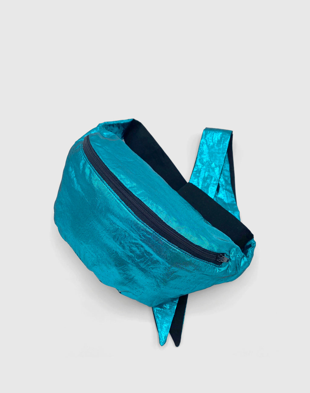 Bum-Bag made of upcycled shiny blue metallic fabric