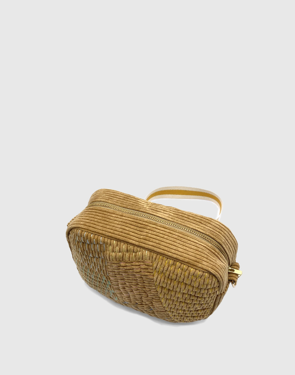 Made from upcycled corduroy fabric with padding and handstitched coloured threads
